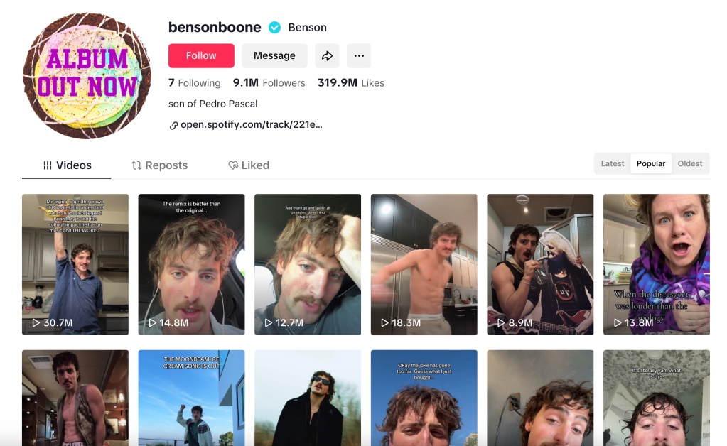 Benson Boone is a 23-year-old American singer-songwriter who rose to fame in 2024 from his viral song, ‘Beautiful Things’ and is known for his flamboyant on-stage backflips. After pulling out of the talent show American Idol in 2021, Boone gained traction on TikTok and now has over 9 million followers, released two studio albums, and later this year will undertake his world tour, already having performed at the GRAMMYs, Coachella and Saturday Night Live, to name a few. What piqued my interest in this album were the mixed reviews it has so far received: Rolling Stone and NME have both rated it 2 out of 5 stars, for example.1 After the success Boone has seen up to this point, I wanted to investigate for myself why this doesn’t seem to have continued. What this ultimately led me to was the implications of TikTok and the way that the streaming platform has impacted the music industry, with the effect of potentially bringing artists rapid and intense fame before they are due/ready for it.